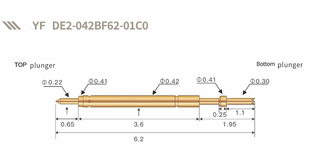Probe de ressort plaquée en or. Une épingle Pogo haute durabilité pour les tests électroniques de contact.